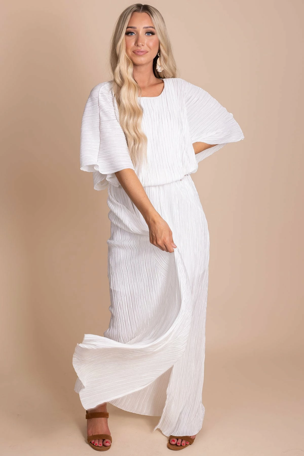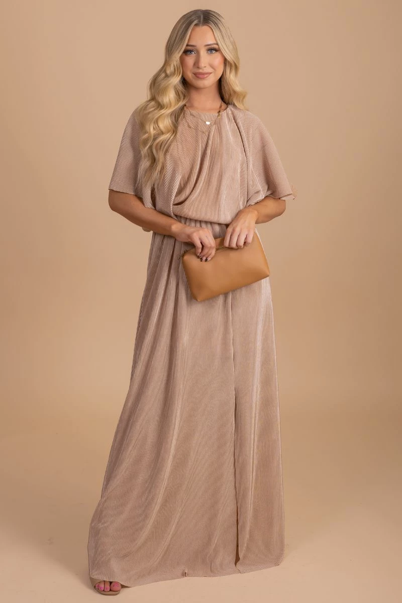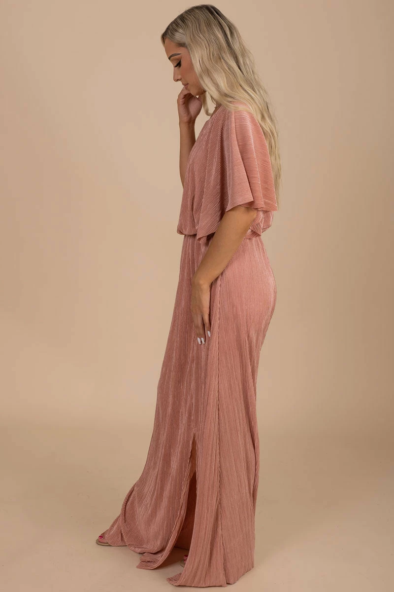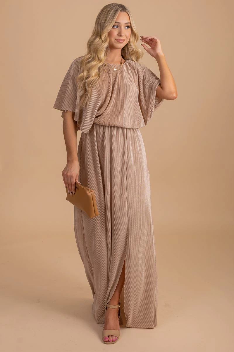Pair our In The Limelight Ribbed Maxi Dress with your favorite pair of heels for a beautiful outfit. This maxi dress is perfect for bridesmaid dresses, wedding guest dresses, your own wedding, a date night, or family photos. This beautiful dress comes in pink, white, champagne, and silver.