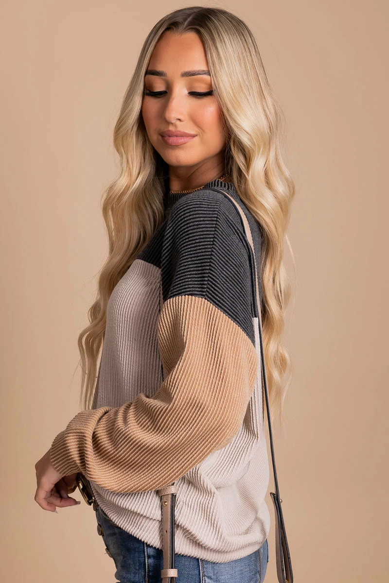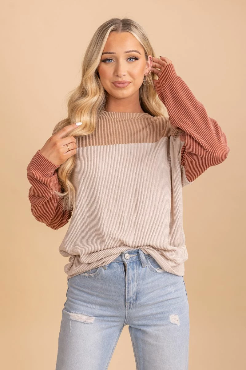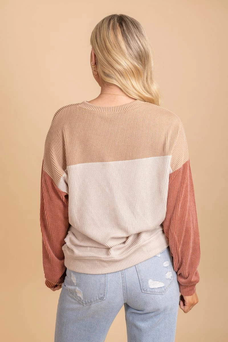 Our Take Chances Color Block Sweater is such a cute fall sweater! This long sleeve sweater features three color options, color blocking, and comfortable ribbed material. The banded cuffs and hem add the perfect finishing touch!