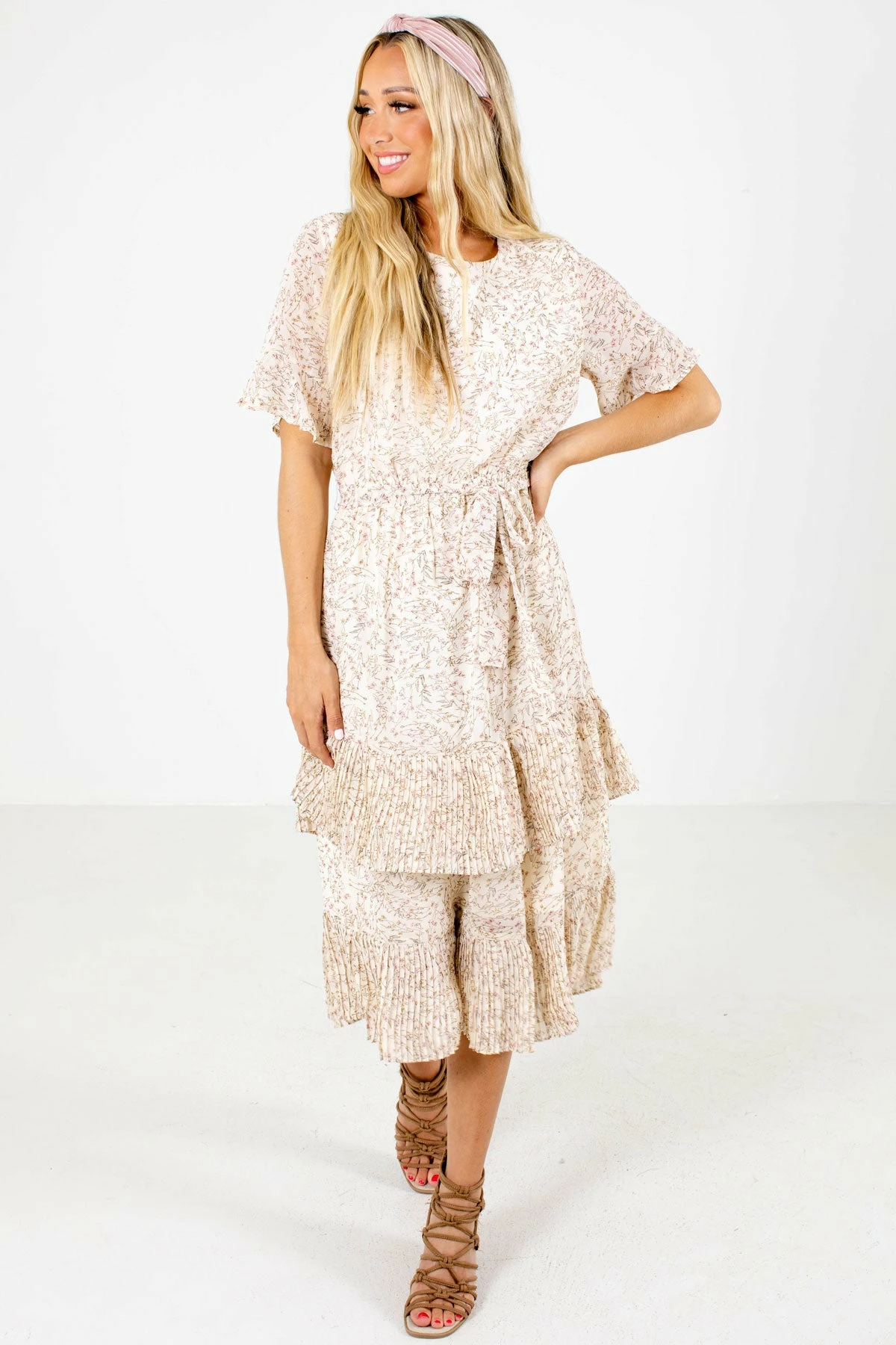Our new Own the Occasion Floral Midi Dress will be perfect for your next special occasion! This dress features a beautiful multicolored floral pattern. We’ve fallen in love with the elastic waistband, waist tie detail, and pleated accents! The high-quality, lightweight material creates a comfortable and flattering fit. The interior lining adds the perfect finishing touch. Pair our Own the Occasion Floral Midi Dress with sleek heels to create a gorgeous look!