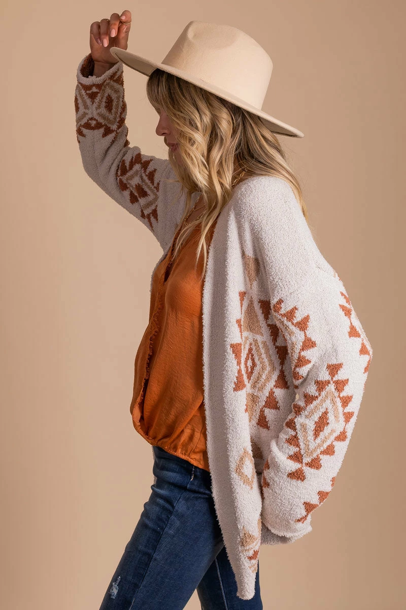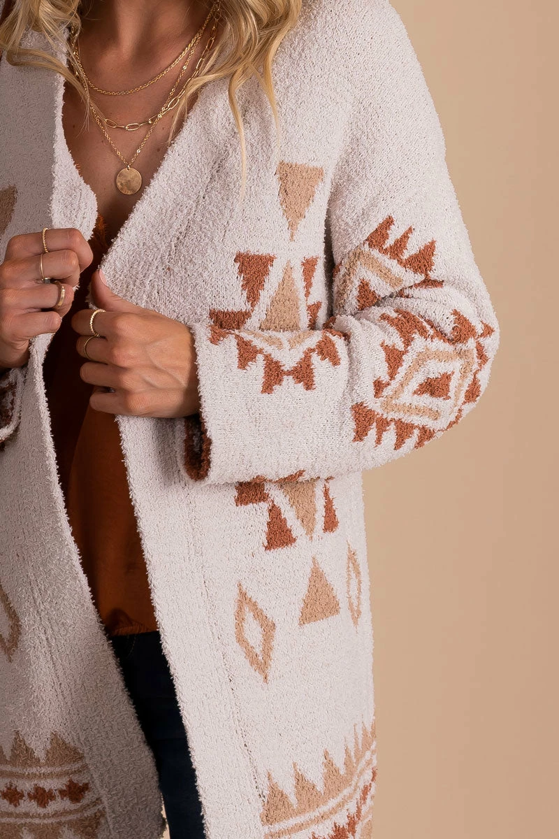 Our Youthful Heart Tribal Print Cardigan would be perfect for a chilly day out or cozy date night.