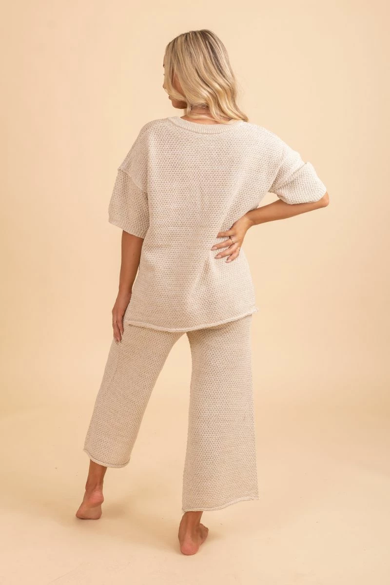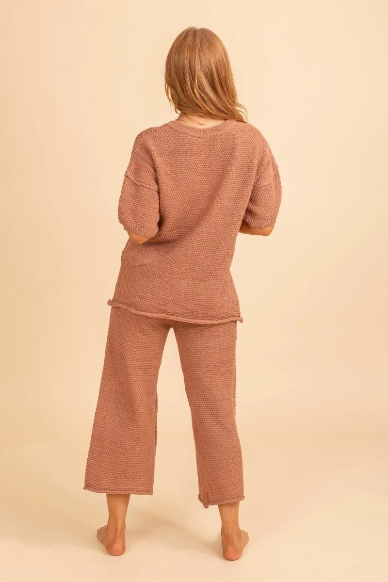 - Short Sleeve Sweater Top, Long Cropped Bottoms