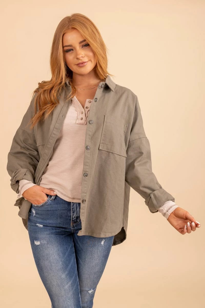 Pair our Love More Green Button Up Jacket with a cute dress and boot heels or dress it down with a cute sweater, denim jeans, and ankle boots!