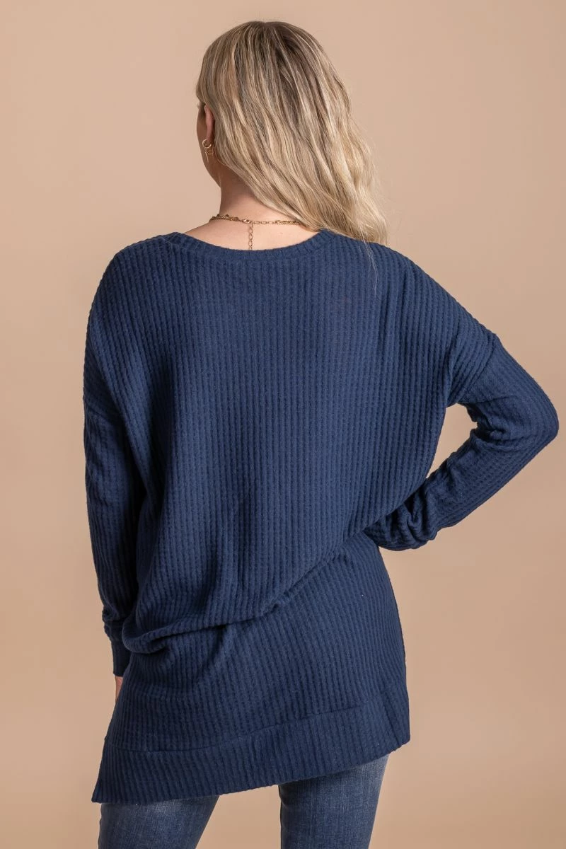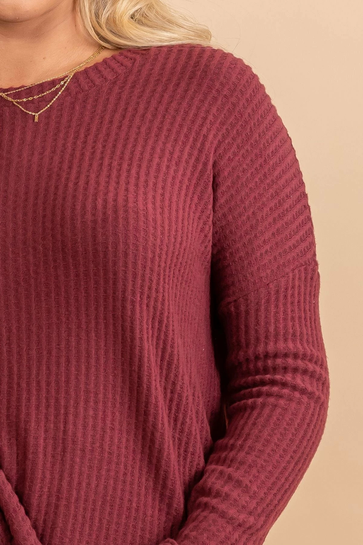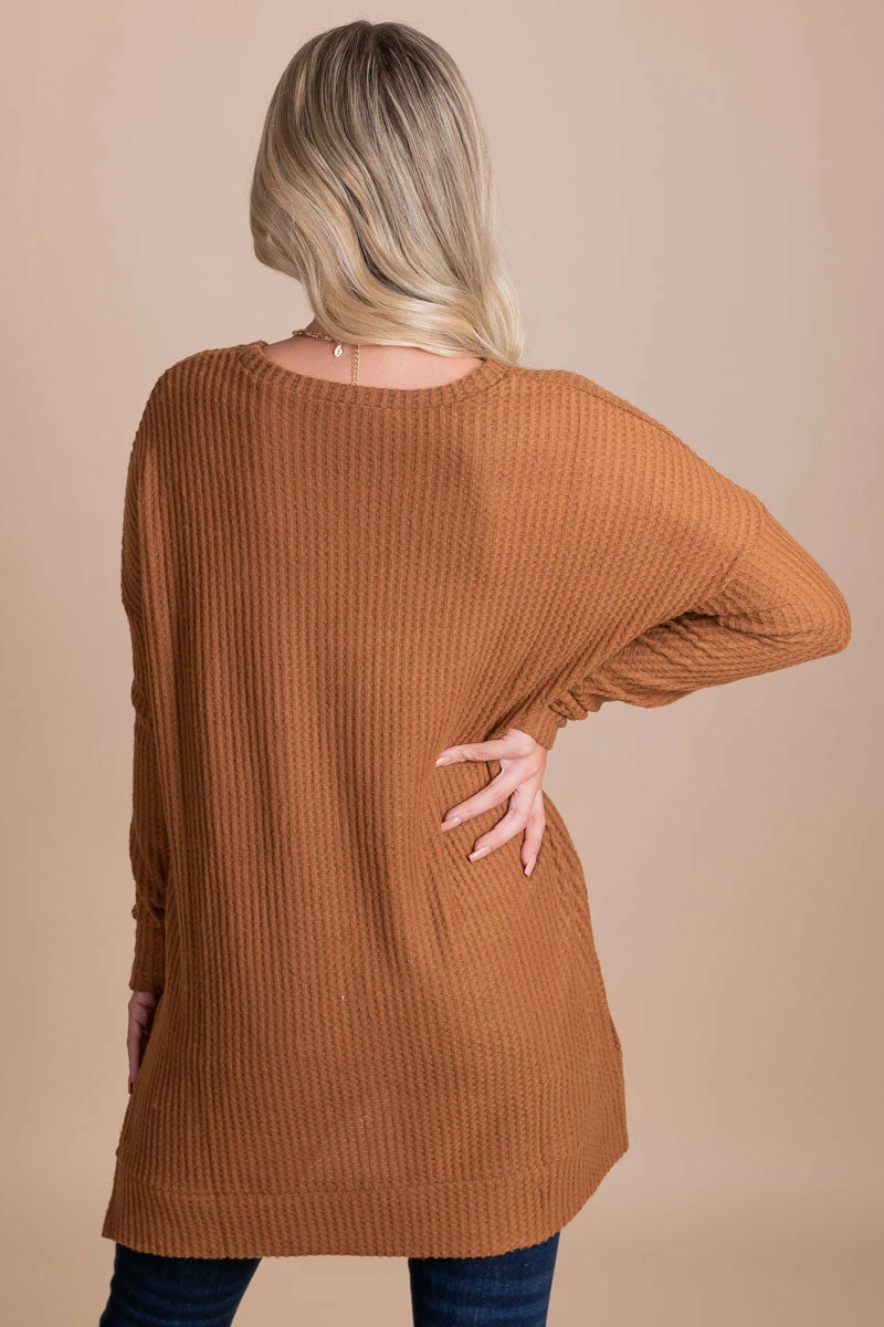 Our Life Goes On Long Sleeve Waffle Top is a fall must-have! This tunic top features long sleeves, a split hem, and comfy oversized fit! The round neckline, cute fall colors, and waffle textured details make this top so easy to wear all fall long! Pair your Life Goes On Long Sleeve Waffle Top under a layering piece or wear it on it’s own this season!