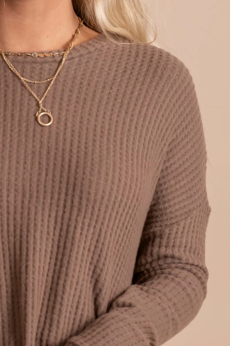 Our Life Goes On Long Sleeve Waffle Top would be perfect for a fall date night out or a cozy evening in, or any special occasion!