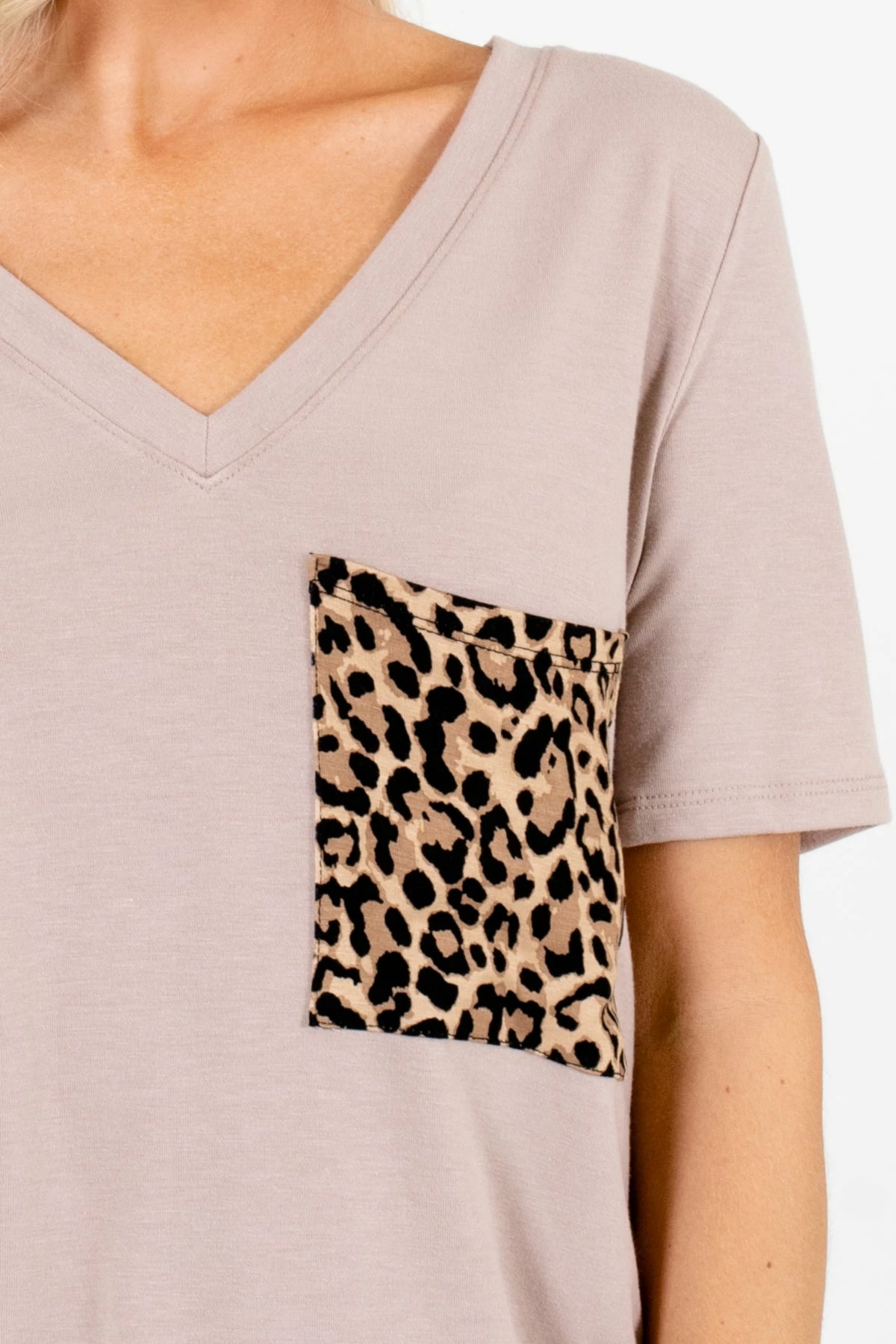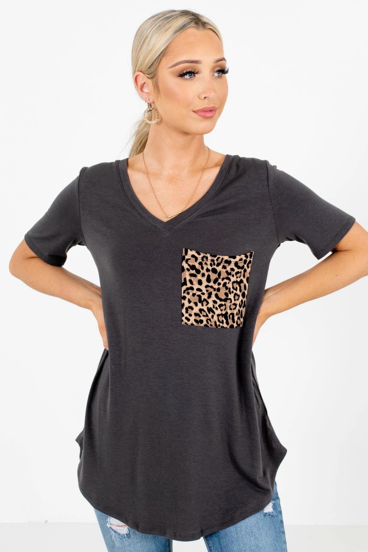 Our new She’s Dangerous Pocket Tee will quickly become your new favorite top! This tee features a brown and black leopard print patterned front pocket. We’re in love with the v-neckline and short sleeves! The high-quality, stretchy material creates a relaxed and comfortable fit. Pair our She’s Dangerous Pocket Tee with distressed denim shorts and your favorite sandals to create a fun outfit!