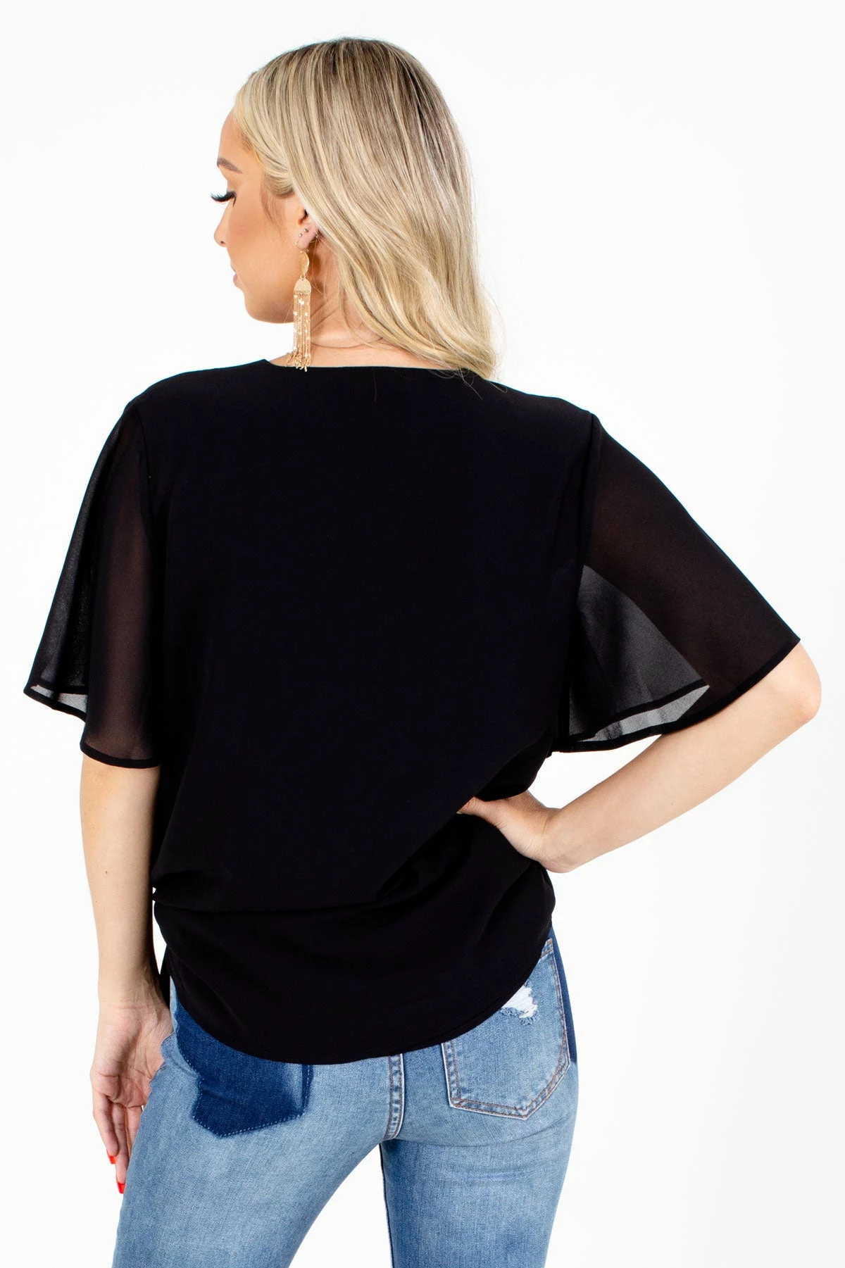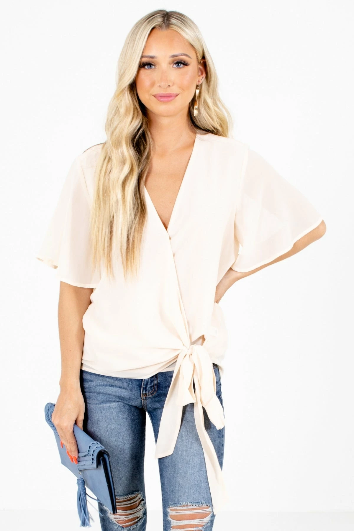 Create a cute, everyday outfit with our new Sweet Success Wrap Top! This top features a functioning wrap style, complete with button closures and a waist tie detail. We’re in love with the high-quality, lightweight material that creates a comfortable and flattering silhouette! The v-neckline completes the look. Pair our Sweet Success Wrap Top with skinny jeans and mules to create an adorable everyday outfit!